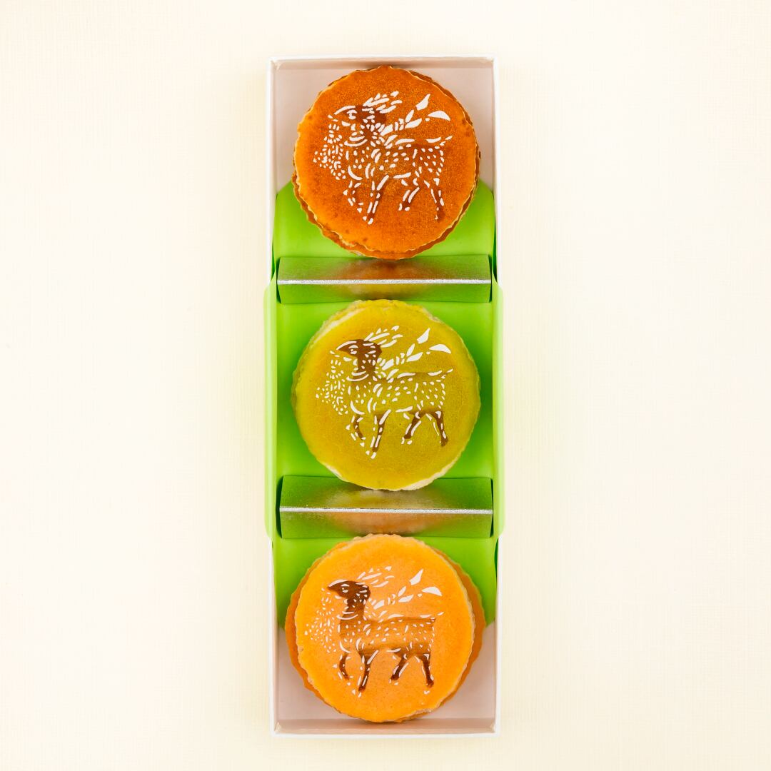 サクサクした食感の麩焼を糖衣し、砂糖で鹿の絵を描いた菓子です。